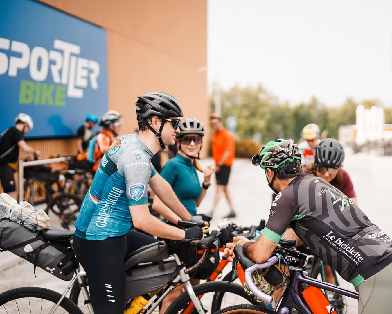 It is a scene that repeats in the days before departures, with different variations. In Peschiera del Garda, before long rides along the Garda cycle path, in Ponte nelle Alpi, when people set off for a long loop in the Dolomites, in Udine on the eve of The Grand Escape Italy–Slovenia, in Innsbruck before The Grand Escape Germany–Austria. SPORTLER’s bike-focused stores have become the place where preparation gets finished. The final check, the spare tube strap forgotten at home, the doubt that kept you from sleeping, was solved by a mechanic who looks at your bike for three seconds and tells you, yes, it is fine like that. The kind of store where they do not look at you strangely if you walk in wearing your bike, they do not explain bikepacking as if it were a brand-new fad, and they do not try to sell you whatever is left in the back, but what you actually need for that specific trip.