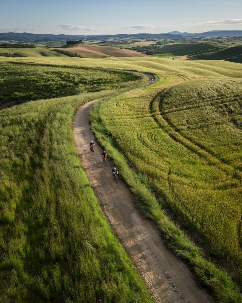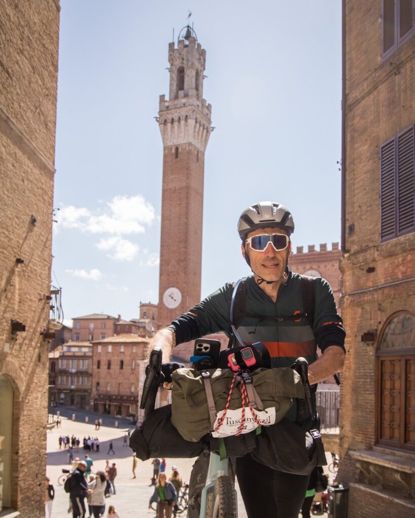 ciao ragazzi, ero al mio terzo Tuscany 2016-2024 e 2025, e vi seguo dalle prime edizioni, tant’è che la mia borsa da viaggio (una pre serie della primissima miss grape) ha cucito il primo strep ricamato del Tuscany, quest’anno sono stato indeciso fino all’ultimo se iscrivermi o meno…poi gli amici, la squadra, con cui giriamo durante tutto l’anno, di Passione Gravel che si era iscritta numerosa, la voglia di respirare quell’aria di festa che è del Tuscany eccomi al 21 a salutare Andrea Borchi il Nure e a preparare con mia moglie gli ultimi dettagli. Percorso bello bello e tosto il giusto. Tosto al punto da ritornare con la memoria alle Apuane a Radicofani e quindi ad immaginare per il prossimo hanno 3 percorsi uno Easy il Tuscany Classic e perchè no un hard che differenziando ci porta verso l’Argentario per poi risalire riallacciandosi al Classic, andando ad esplorare oltre alla riserva di Monte Rufoli anche la foresta Caselli e Macchia della Magona…..così giusto per fare due chiacchere..