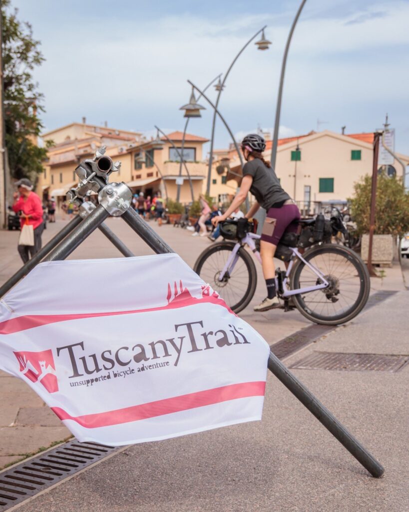 One of the most powerful feelings during the ride came from the visible presence of the Tuscany Trail along the route. In countless towns, all you had to do was look up to see a Tuscany Trail flag waving from a balcony—or spot one of the official stickers on the windows of a bar, grocery store, or artisan shop. A simple gesture, yes—but incredibly meaningful. It told you that you were expected. That this land was welcoming you. That you weren’t just passing through—you were part of something shared.
